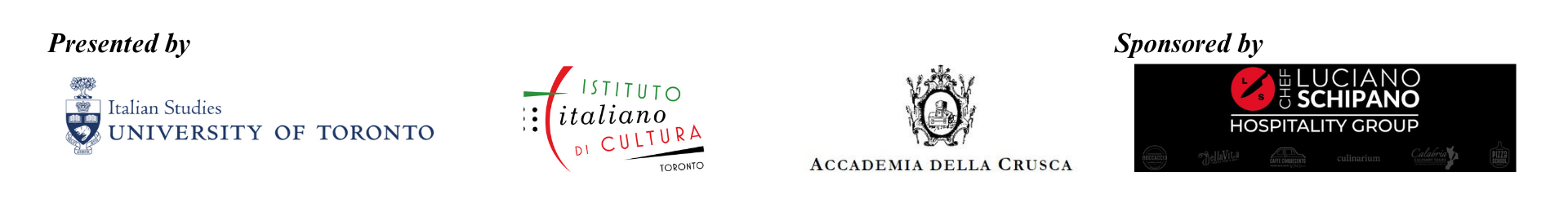 Presented by the Istituto Italiano di Cultura Toronto, the Department of Italian, Spanish, Portuguese, and Latin American Studies (ISPLAS) at the University of Toronto, and the Accademia della Crusca. Sponsored by Chef Luciano Schipano Hospitality Group.
